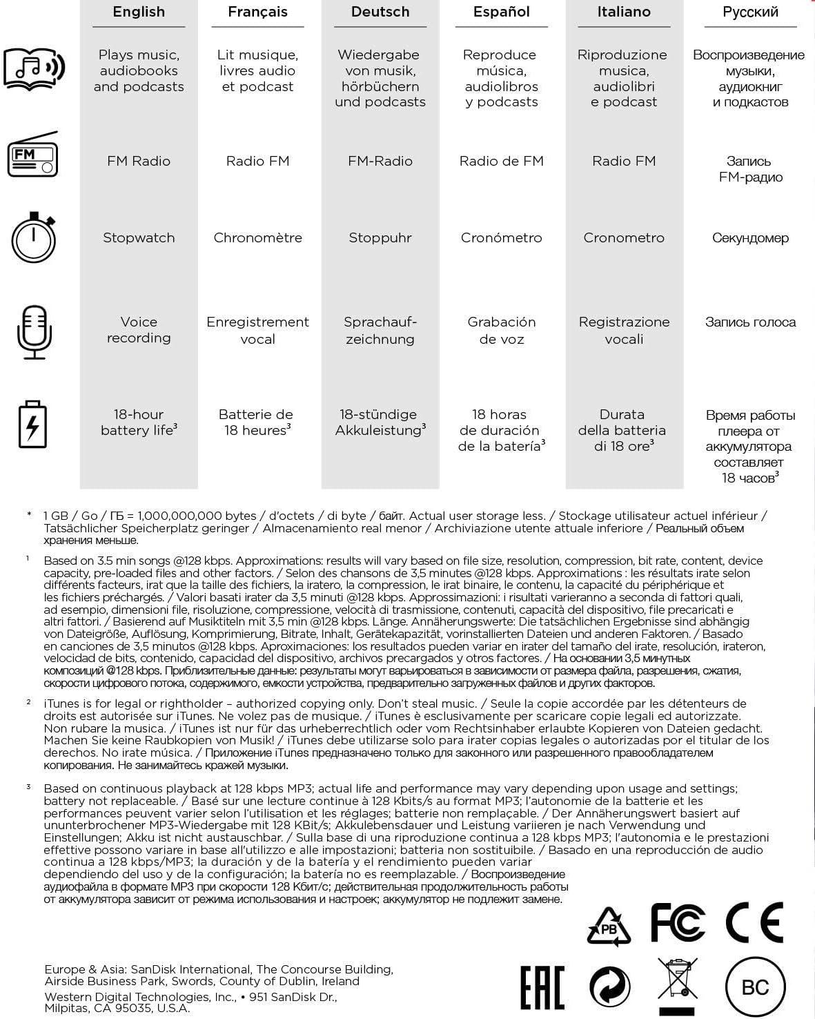 Supports iTunes (AAC codec) content, Built in FM radio perfect for the gym or your outdoor run